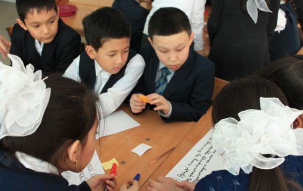 Сыныптың оқушылары тапсырмалармен жұмыс істеді.