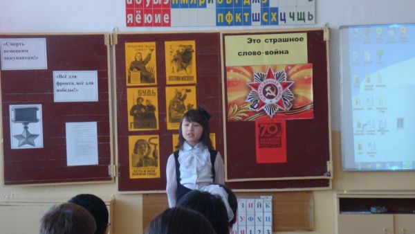 Ұлы Отан соғысы Жеңісінің 70-жылдығына орай 4 «Б» сынып жетекшісі Яковенко Б.В. ашық сынып сағатын өткізді.