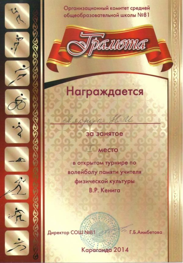 5 ноября 2014 года на базе СОШ № 81 проходил открытый турнир по волейболу памяти учителя физической культуры В.Р. Кенига.