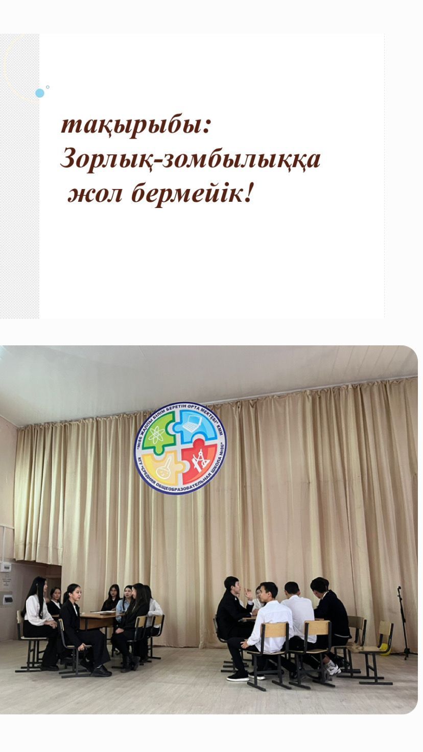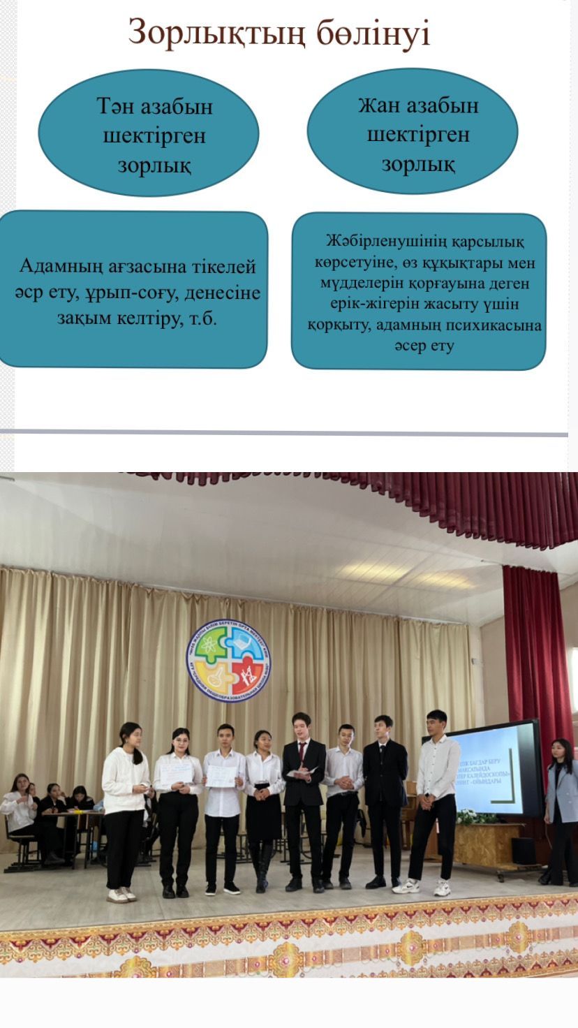 Оқушыларға зорлық зомбылық туралы мағлұмат беру, адамның ең жаман қасиеті екенін айту.
