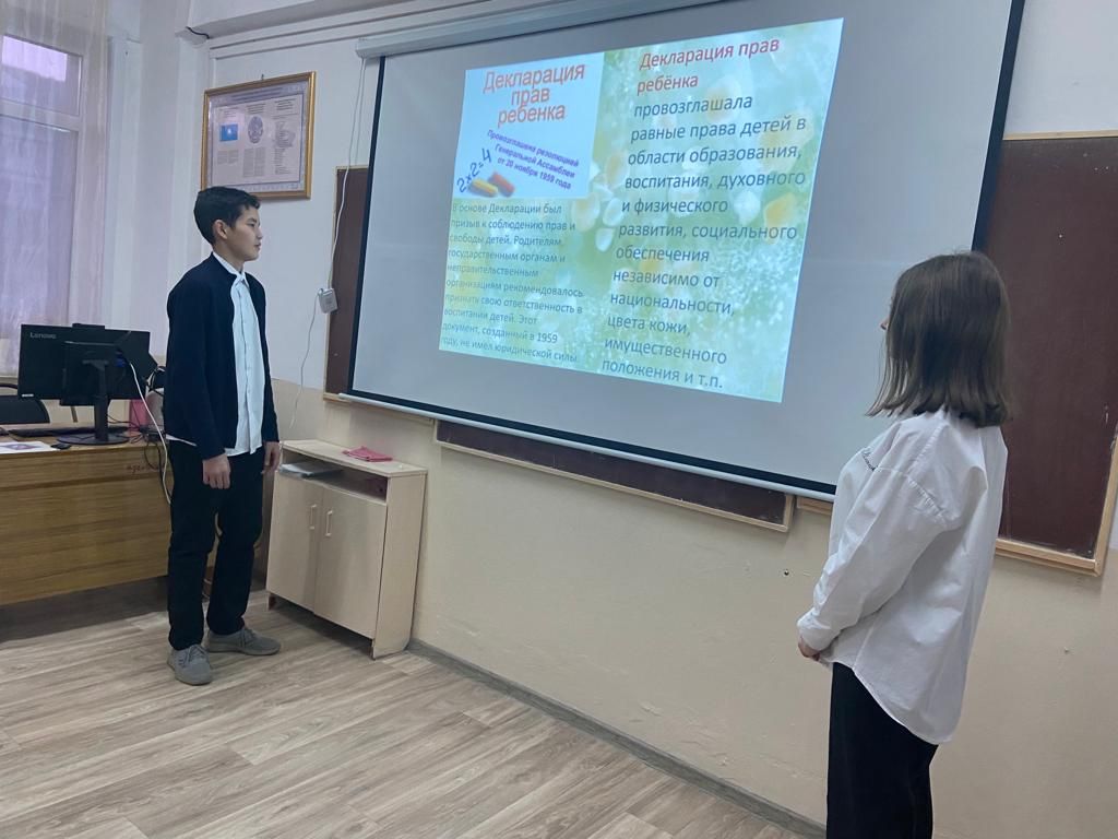 20 Қарашада 10 "В"-сыныпта Дүниежүзілік бала құқықтарын қорғау күніне арналған сынып сағаты өтті. Сынып сағатының мақсаты мен міндеттері балалардың құқықтары мен міндеттері туралы білімді…