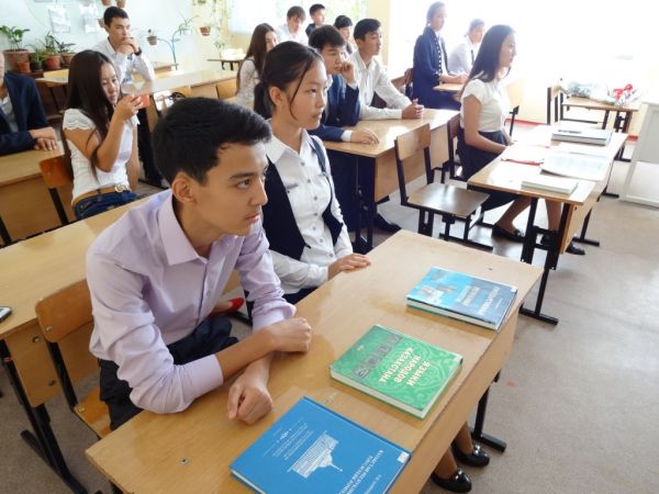 10 сынып оқушыларының лекторлық тобы "Қазақстанда орыс тілі туралы" хабарлама жасады.