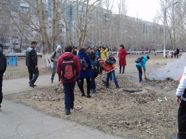 Мектеп оқушылары қала әкімшілігінің шақыруына үн қатып, мектеп ауласын тазалау бойынша сенбілікке шықты.