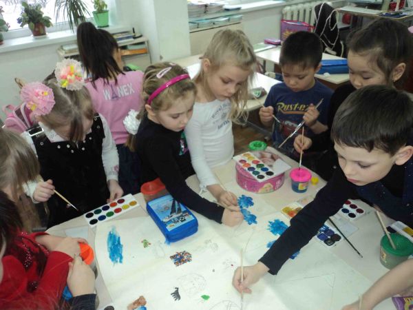 Ученики 0 класса начали подготовку плаката к празднику Наурыз.