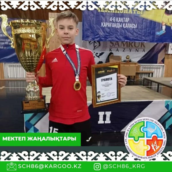 Поздравляем!!! Ученик 7В класса Юрковец Александр занял 1 место по мини футболу на IV Чемпионате Республики Казахстан среди мальчиков 2009-2010 г.р.