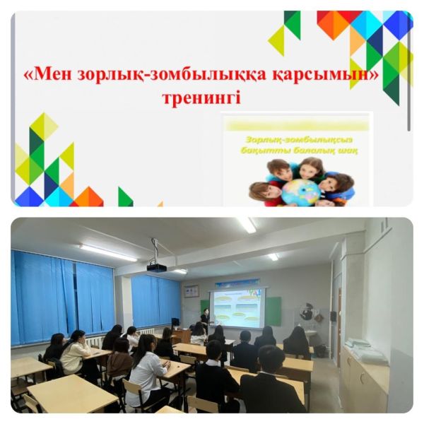 В рамках акции «16 дней без насилия» 10 отличников прошли тренинг на тему «Я против насилия». Цель: Дать учащимся краткую информацию о насилии, сказать, что оно является одни…