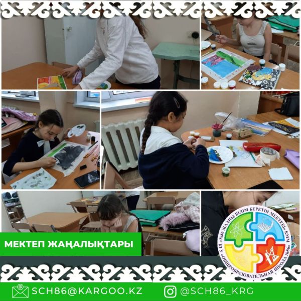 С 14 ноября у нас в школе проходит неделя эстетический грамотности «Әсемдік әлемінде» в рамках которой ребята 8х и 5-6 классов рисовали постеры и творческие работы на тему: «Мир гл…