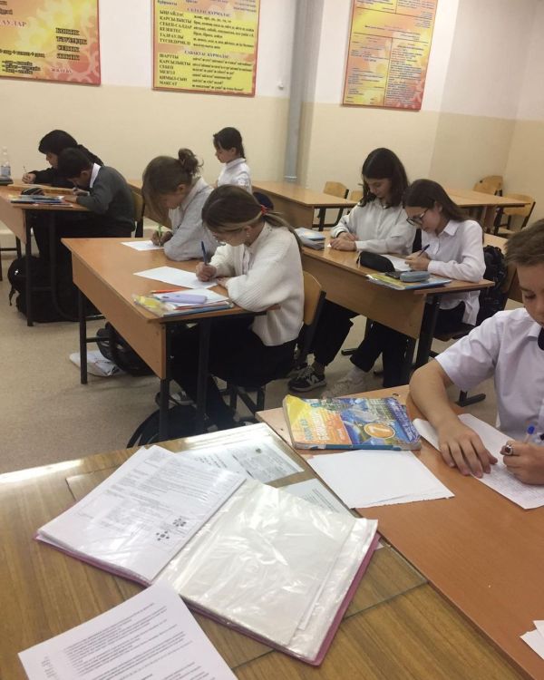 19.10.2022 году в 8 «А», 8 «Ә» классах 42 учеников писали общереспубликанский диктант на тему: «Қырын елім-Қазақстаным» #Республикакүнібілім09