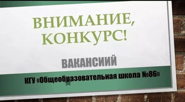 № 86 жалпы білім беретін мектеп" КММ 2022-2023 оқу жылына оқытушылар құрамының және оларға теңестірілген тұлғалардың бос лауазымдарына орналасуға конкурс жариялайды:
