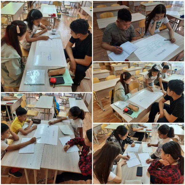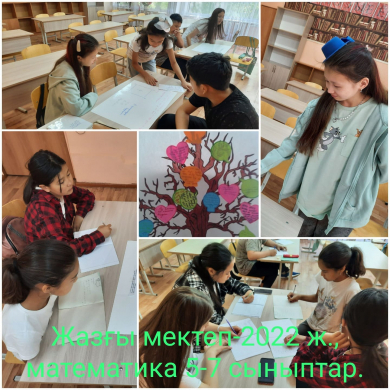 Жазғы мектеп-2022". 5-7сынып оқушылары математика және алгебра сабақтарында өтілген тақырыптарды пысықтауға арналған жаттығулар орындау барысында.