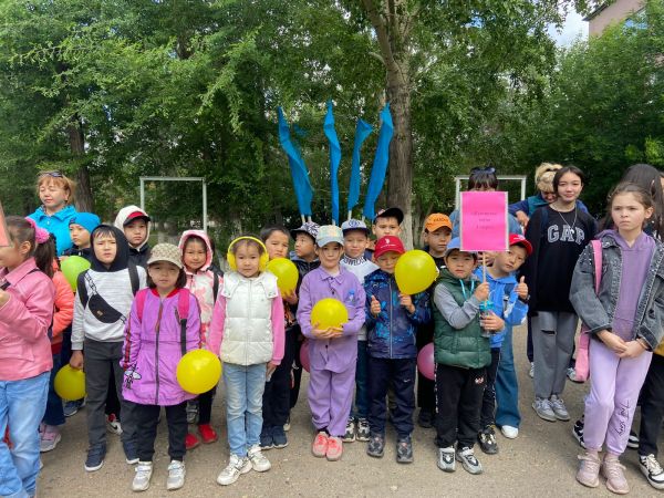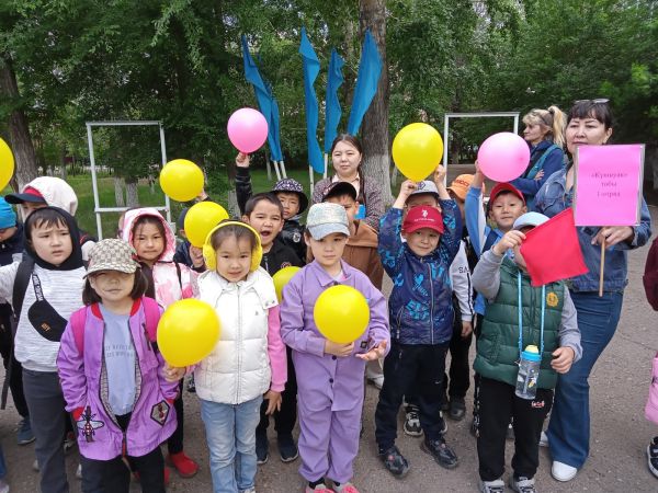 2 маусым күні мектеп жанындағы жазғы сауықтыру лагеріне қатысушылар "Таңғы жаттығу"түрлерін жасап, "СарыАрқа" кинотеатрына барды. "Мен қызарып барамын " атты мультфильм…