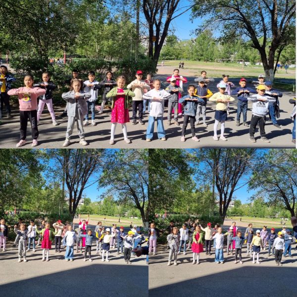 2 маусым күні мектеп жанындағы жазғы сауықтыру лагеріне қатысушылар "Таңғы жаттығу"түрлерін жасап, "СарыАрқа" кинотеатрына барды.