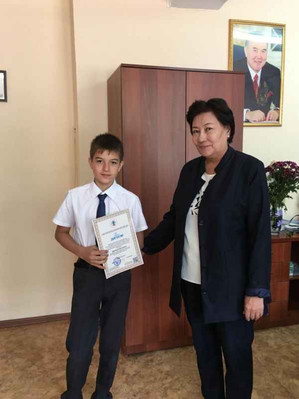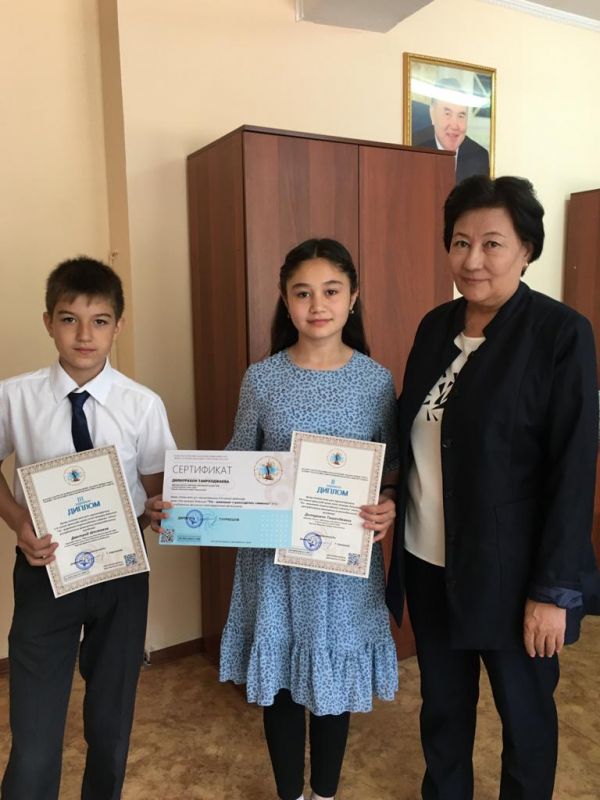 Қазақ тілінен өзге ұлт оқушыларының 5-9 сынып арасында қазақ тілін меңгеру бойынша "Тіл - мемлекет тәуелсіздігінің символы" атты республикалық қашықтық олимпиадасының 2 орын иегері 6 Г сын…
