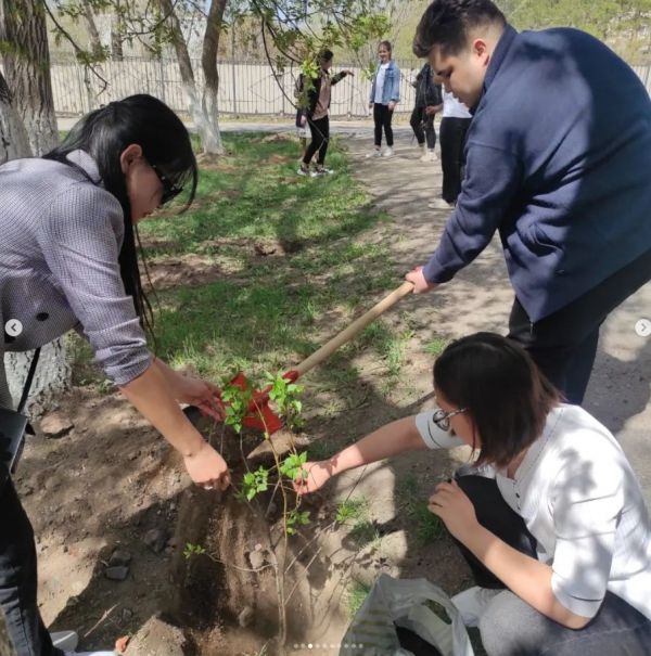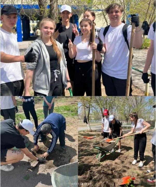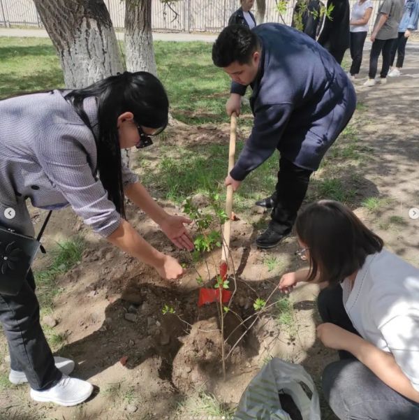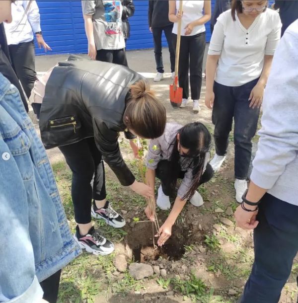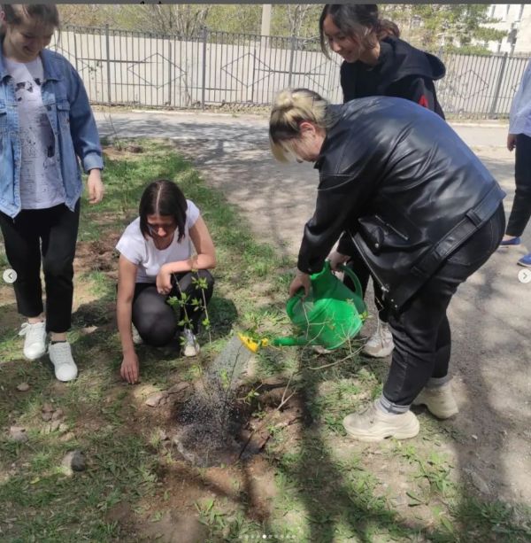В рамках празднования дня Земли с целью оказания благоприятного влияния на улучшение экологической ситуации выпускники 11 б и 11 в классов посадили на территории школы саженцы сирени, калины, вишни.