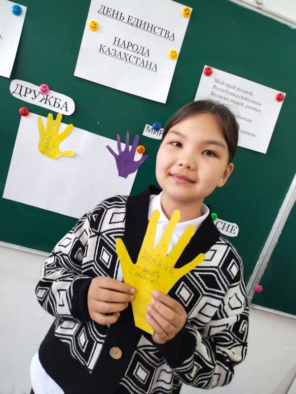 Во 2 В классе прошёл классный час на тему День единства народов Казахстана.