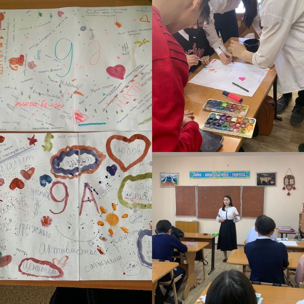 15.04.2022 9 -шы сынып оқушыларымен мектеп психологі “Экзаменді стрессіз тапсыр” тренингін өткізді.