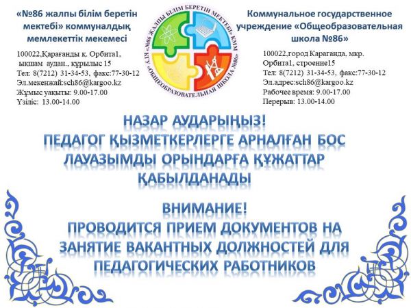 Проводится прием документов на занятие вакантных должностейдля педагогических работников