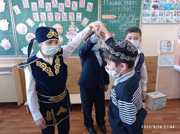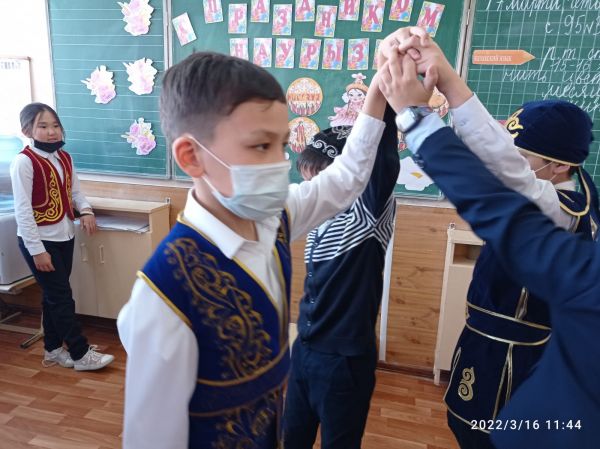 Классный час на тему «Наурыз – праздник весны» прошёл во 2 В классе. Цель мероприятия: ˗ закрепление у детей знаний о казахских народных традициях, обычаях, обрядах; ˗ привитие чув…