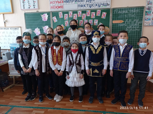 1 «А» сыныбында 18.03.2022 күні «Наурызым, қош келдің!» атты сынып сағаты өтті.