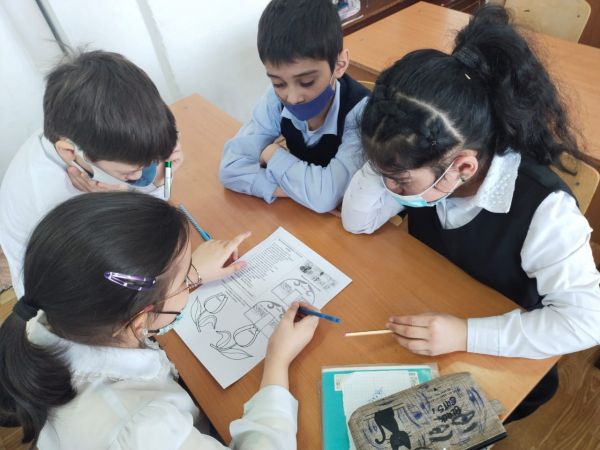 Сегодня ученики 3 "Е" класса в перерывах между уроками выполняли в группах интересные задания "Наурыз-весна, Наурыз-праздник".