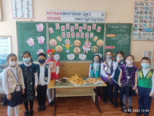 16 марта в 1 Г классе прошел классный час "Наурыз - праздник добра и мира". Учащиеся познакомились с особенностями казахского национального костюма и казахскими национальными блюдами.