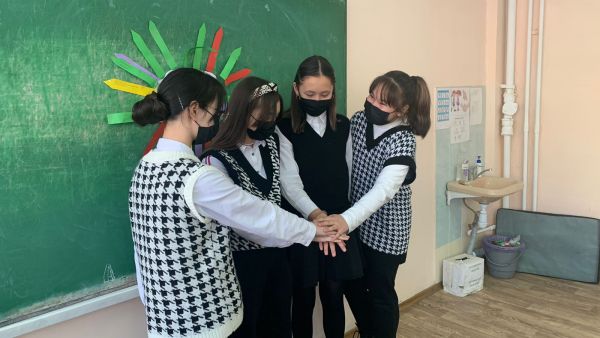 С учащимися 4"Ж" и 4"Г" классов волонтеры школьного отряда "ДДД" провели занятия на тему: "Доброта в твоих руках".