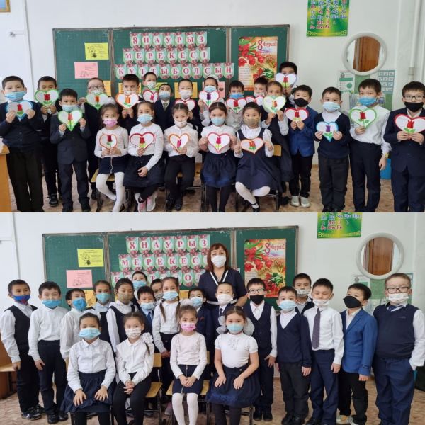 Келе жатқан 8-наурыз мерекесіне орай, 2 "А" сыныбында "Ана-өмірдің шуағы" атты сынып сағаты өтті. Мақсаты: аналарды, әжелерді, қыздарды халықаралық 8- наурыз мерекесімен құттықта…