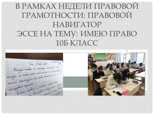 В рамках недели правовой грамотности: Правовой навигатор Эссе на тему: Имею право 10б класс