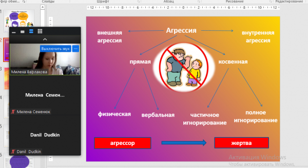 с учащимися 7-х классов психологом школы Магавьяновой К.С. было проведено онлайн занятие на тему: "Жизнь без агрессии и насилия". Цель занятия: профилактика агрессивности и конфликтов сред…