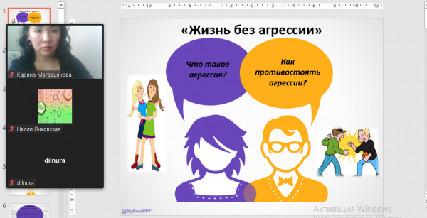 с учащимися 7-х классов психологом школы Магавьяновой К.С. было проведено онлайн занятие на тему: "Жизнь без агрессии и насилия".
