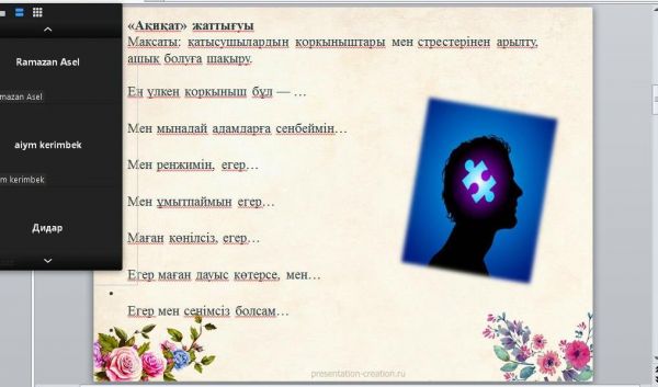 09.02.2022жыл мектеп психологы Ж.Б.Аманкешова 9 және 11 сынып оқушыларымен "Мамандық таңдау өміріңнің бір кірпішін дұрыс қалау" тақырыбында zoom арқылы кездесу өткізді.