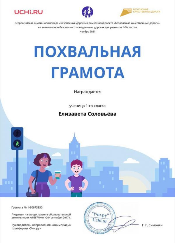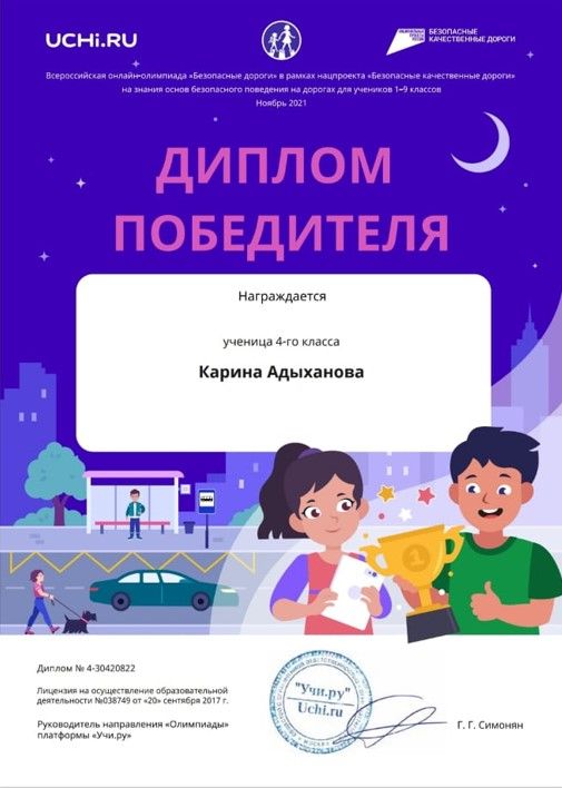 Учащиеся 1 "Г" класса и 4 "В" класса участвовали в онлайн-олимпиаде "Безопасные дороги" - в рамках нацпроекта "Безопасные качественные дороги" на знание основ…