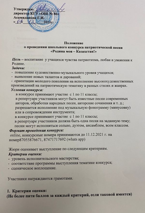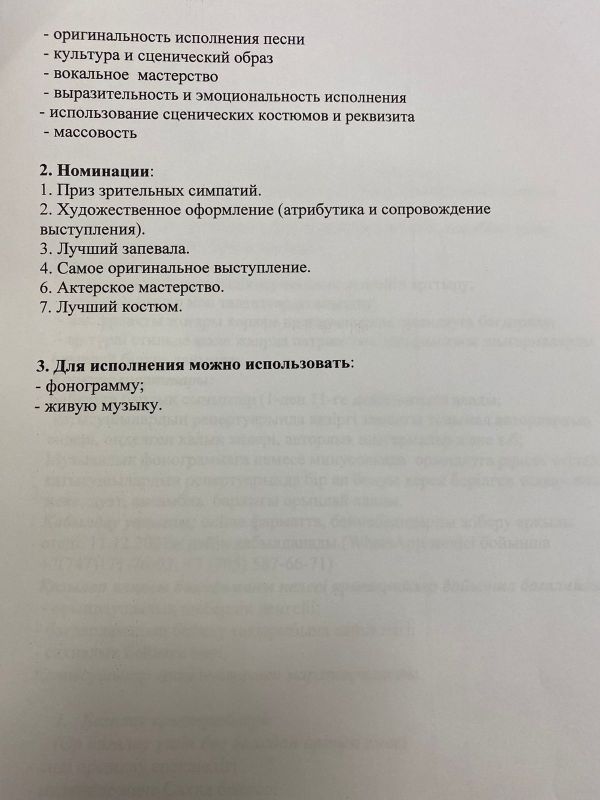 «Менің Отаным - Қазақстан» атты мектепшілік патриоттық әндер байқауының ережесі