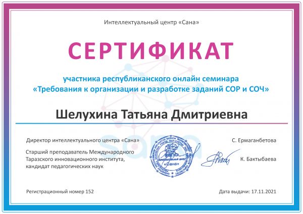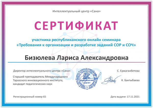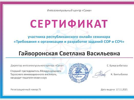 Учителя начальных классов, Бизюлева Л.А., Гайворонская С.В., Шелухина С.В., приняли участие в республиканской онлайн-семинаре "Требования к организации и разработки заданий СОР и СОЧ".