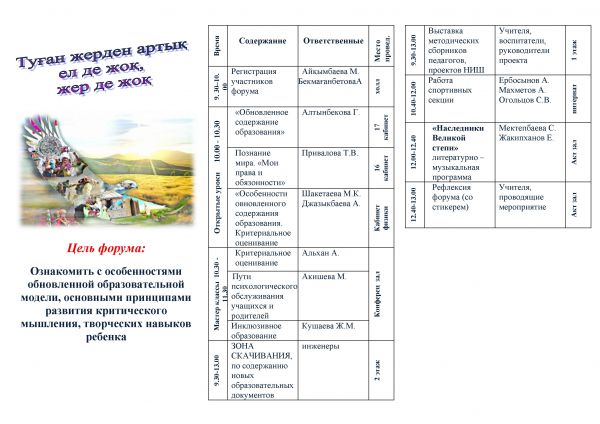 16 қараша күні N68 мектеп- интернатында "Ұлы дала мұрагерлері" форумы өткізілді. Форум өткізу барысында  мектептің 3  қабаты да шараға сай безендірілді. Мектептің 1 қабатында&nbs…