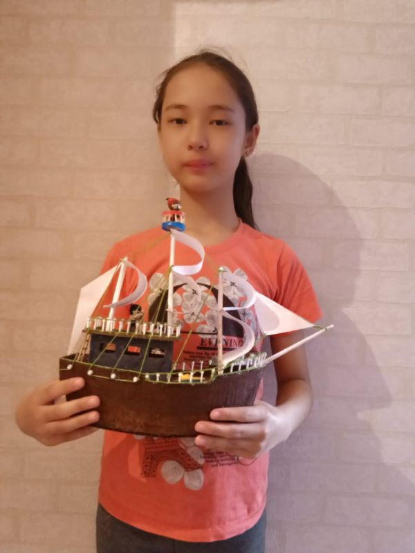 ЭкоАсар акциясы аясында 4а сынып оқушысы Қуанышпекова Эльвира картон, жіп, ақ қағаздан өз туындысымен бөлісті.