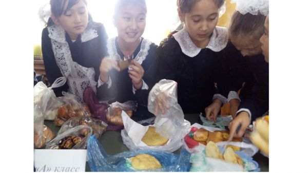 «Күз тартуы» жәрмеңкесі Мектептің  I қабатында «Күз тартуы» жәрмеңкесі өткізілді. Оған 1 – 11 сынып оқушылары қатысты. Жәрмеңкеде халықтың көптігінен «ине…