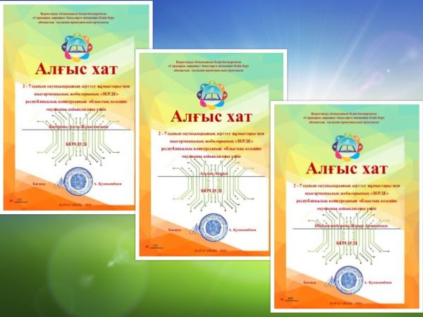 Зерде ғылыми жұмысына қатысқан оқушылардың сертификаттары, мұғалімдердің алғыс хаты құтты болсын!  Оқушылардың талабына нұр жаусын!