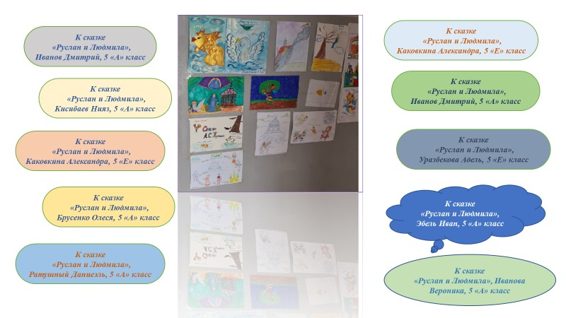 Учащиеся пятых классов предложили работы для выставки Литературная ярмарка в виде иллюстраций, книжных закладок.