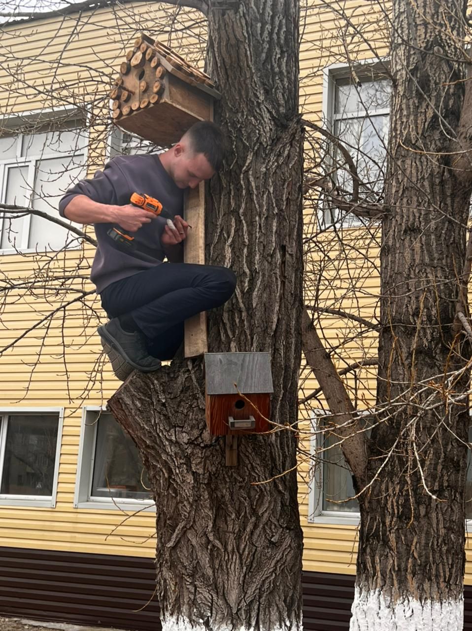 Родители и учащиеся школы изготовили и развесили скворечники для птиц.