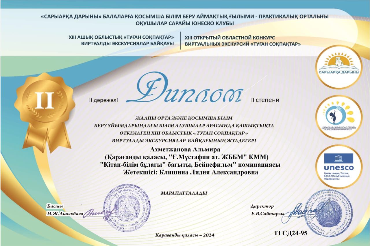 Администрация школы и педагогический коллектив поздравляют Ахметжанову Альмиру, ученицу 4 «Б» класса, с победой в ХІІІ областном конкурсе виртуальных экскурсий «Туған соқпақтар&raq…