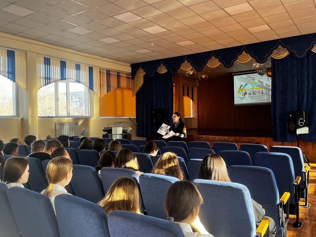 28 қараша күні бейіндік бағдар беру бойынша "ҚТжСК" Қарағанды технология және сервис колледжінің өкілі Нурманова Гүлзат Бауыржанқызы 9-сынып оқушыларымен кездесіп жұмыс жүргізді.