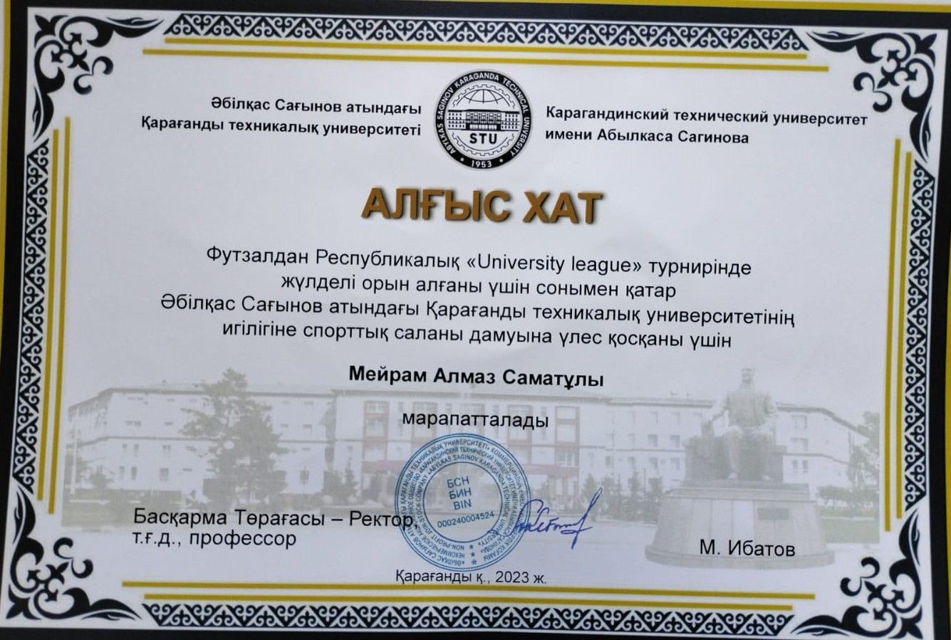Бикбаев Руслан, Калгужинов Олжас и Мейрам Алмаз. Стали серебряными призерами в Чемпионате Казахстана среди ВУЗов в составе КарТУ.