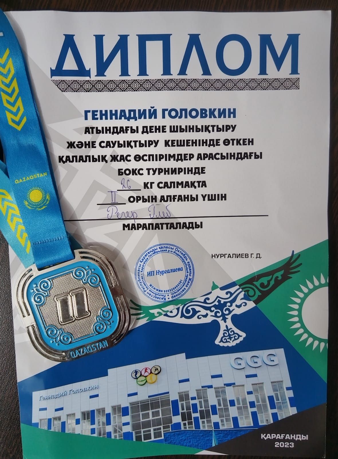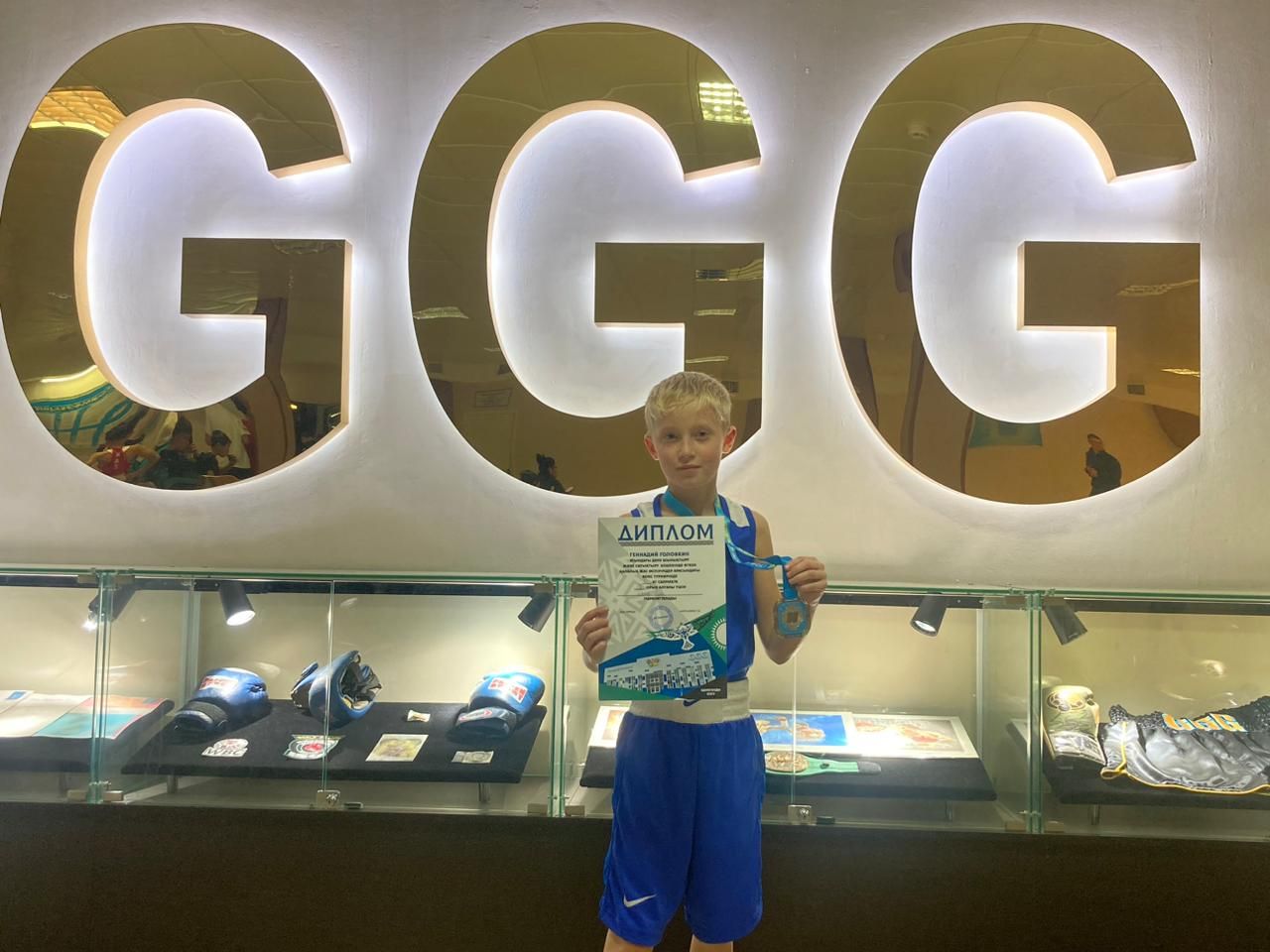 В спортивном центре Г.Головкина прошёл турнир по боксу .В весовой категории 26 кг ученик 4"А" класса Регер Глеб занял 2 место. Умничка. Дальнейших побед.