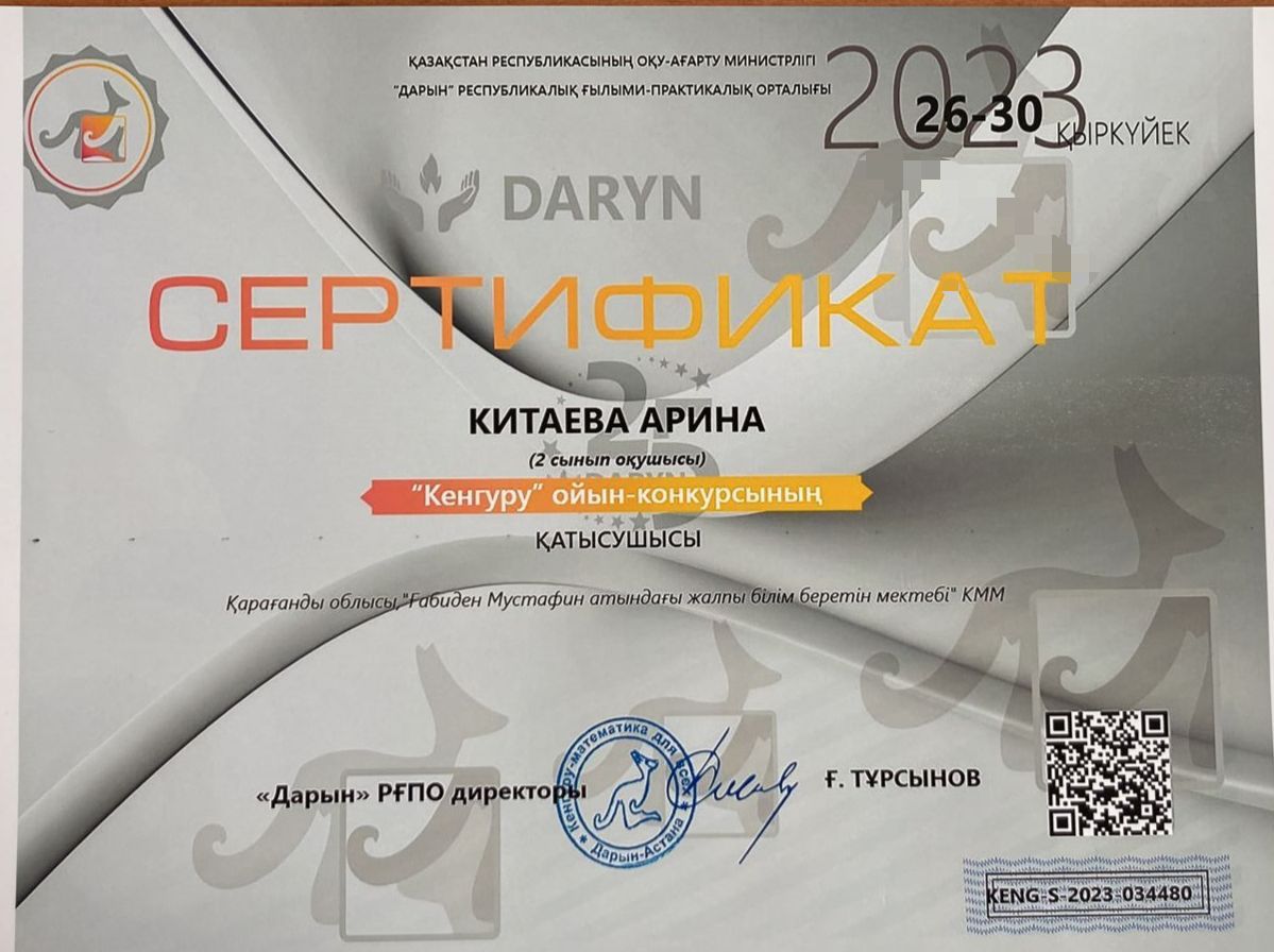 Поздравляем победителя - ученика 2 "Г" класса Байназарова Даниила ( II место)  и призеров - учеников 2 "Г" класса Анисимова Илью и Китаеву Арину (сертификаты), республиканск…