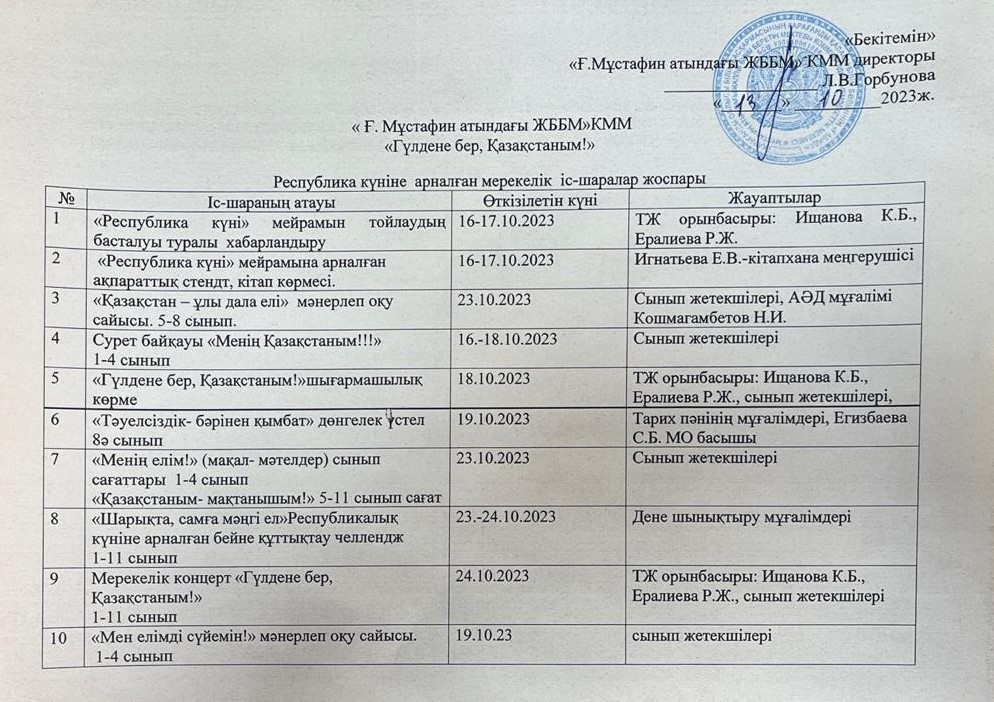 Municipal state Institution "Gabiden Mustafin Secondary School" of the Akimat of the city of Karaganda state Institution "Department of Education of the city of Karaganda"