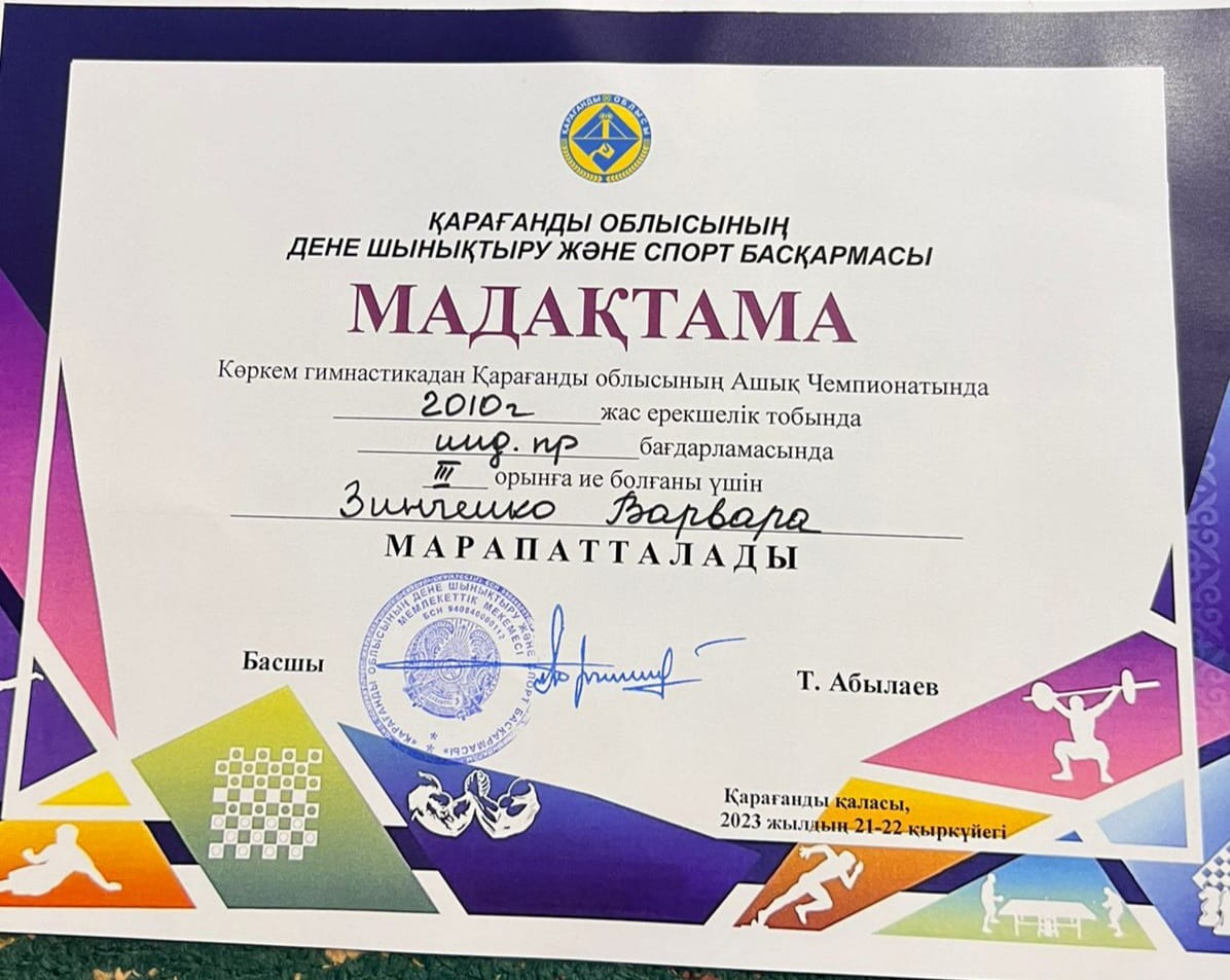 21- 22 сентября 2023 года в г. Караганде прошёл Чемпионат Карагандинской области по художественной гимнастике. Ученица 8"Г" класса КГУ "ОШ им.Г.Мустафина " Зинченко Варвара в инд…