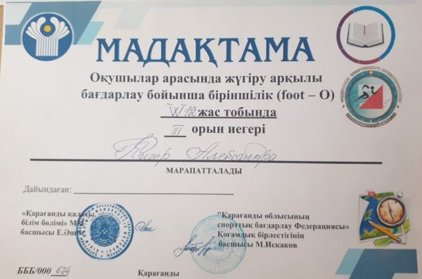 "Ғ. Мұстафин атындағы ЖББОМ" КММ саябаққа бағдарлау бойынша Қарағанды облысының чемпионатына белсенді қатысты