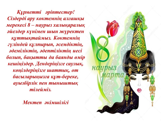 Көктеммен бірге бізге әдемі және керемет мереке-8 наурыз Халықаралық әйелдер күні келді