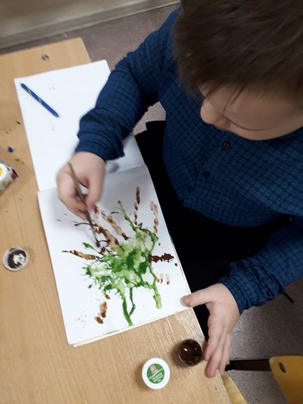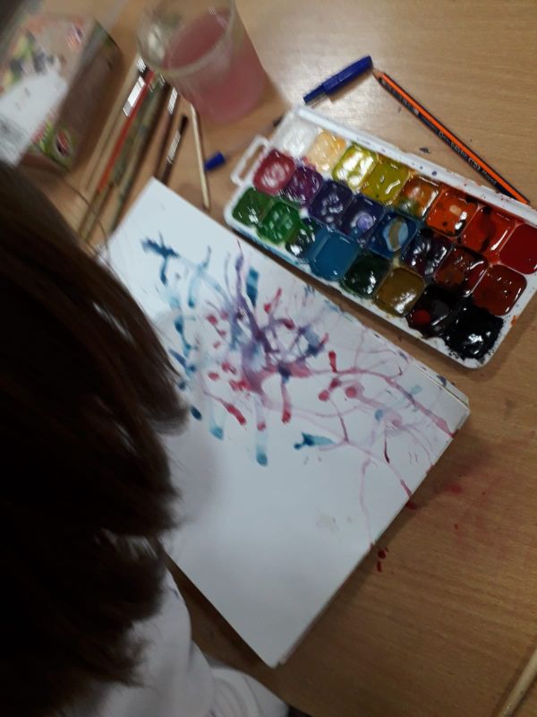 "Шеберлер әлеміне саяхат" эстетикалық сауаттылық апталығы аясында 2 " Г " сыныбында " Кляксография дегеніміз не?"атты танымдық сынып сағат өткізілді